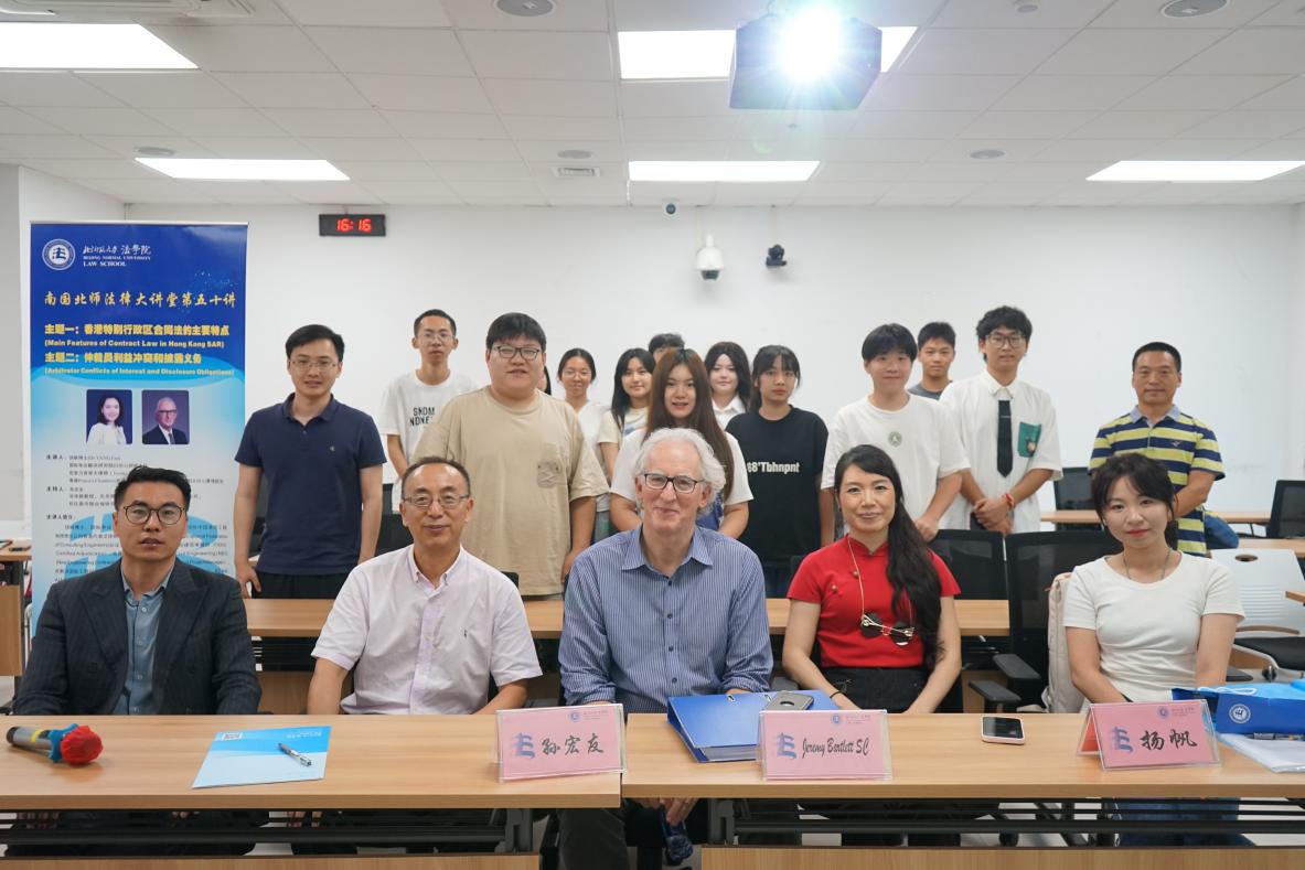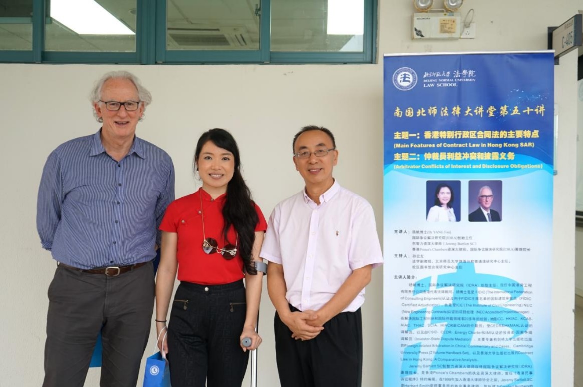 On April 20th, the 50th lecture of the BNU Zhuhai Legal Lecture Series themed "Main Characteristics of the Contract Law of the Hong Kong Special Administrative Region" and "Conflicts of Interest and Disclosure Obligations of Arbitrators" was successfully held at Room C405, Lijiao Building, Beijing Normal University at Zhuhai. This lecture was given by Jeremy Bartlett Senior Counsel (SC) and Dr. Yang Fan. Associate Professor Sun Hongyou, Director of the Compliance Center of the Library of Beijing Normal University at Zhuhai, presided over the lecture. Master's and doctoral students from Beijing Normal University Law School and students from Beijing Institute of Technology, Zhuhai attended the lecture.