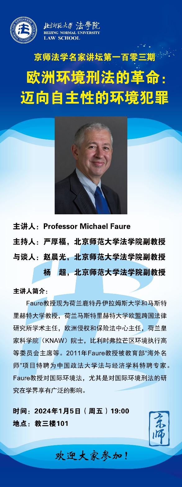 The 103rd Session of the BNU Distinguished Jurist Lecture Series - The Revolution of European Environmental Criminal Law: Towards Autonomous Environmental Crimes