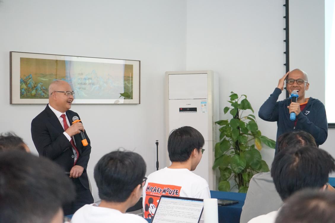 Concluding the lecture, Professor Zhao Wenzong engaged in a constructive dialogue with Professor Ma Yaotian. Professor Zhao Wenzong began by extending his appreciation to Professor Ma Yaotian for his exemplary presentation and shared his insights on the lecture's content. He also connected the discussion to real-life applications, expressing his sincere hope that students would contribute to the global dissemination of China's legal system. In response, Professor Ma Yaotian addressed Professor Zhao Wenzong's remarks in detail and encouraged students with a passion for legal translation to explore the field more profoundly. He welcomed the students to continue engaging in meaningful exchanges with him on the subject.