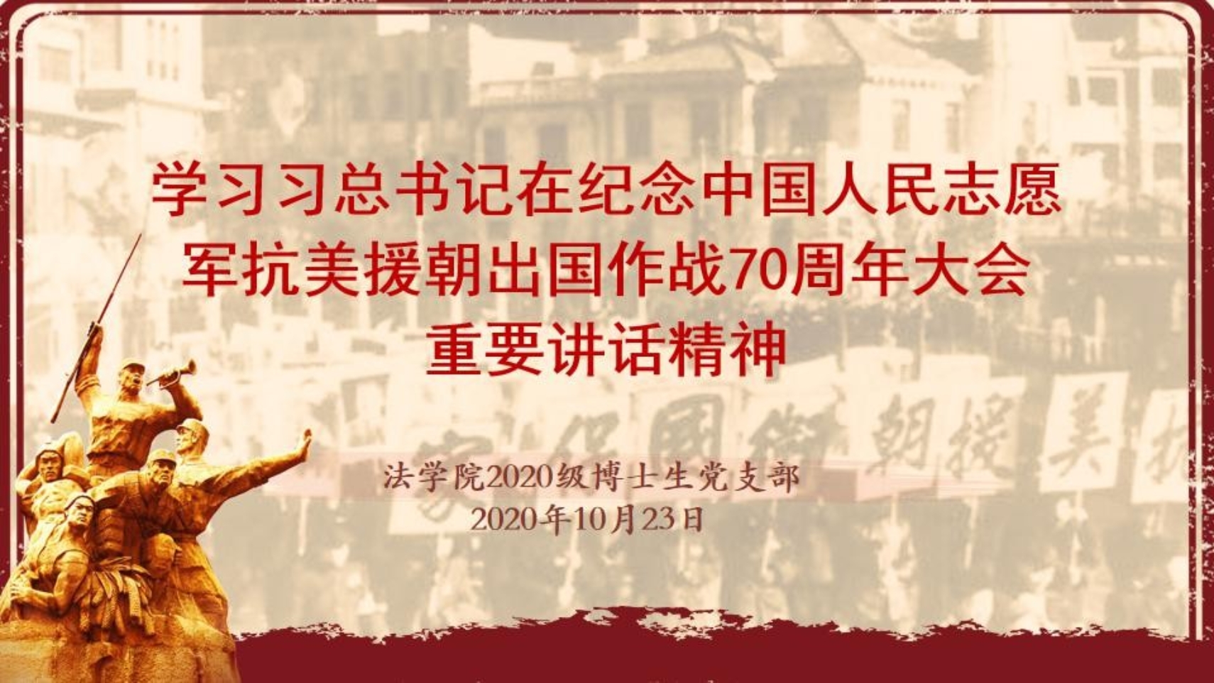 成人视频 2020 级博士生党支部学习习总书记在纪念中国人民志愿军抗美援朝出国作战 70 周年大会上的重要讲话精神会议于 2020 年 10 月 23 日星期五 12:30应时在线上举办。支部 19 名党员和 5 名入党积极分子按时到会并参与讨论。会议由支部书记詹周达同学主持。