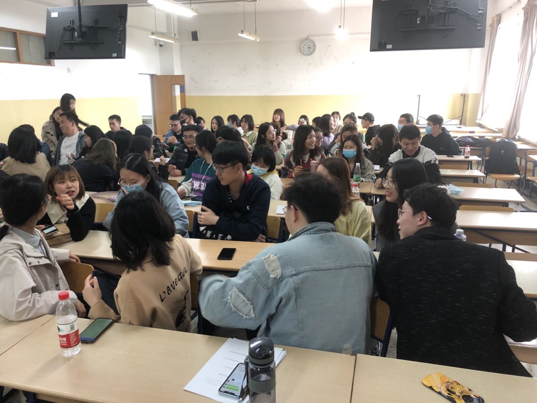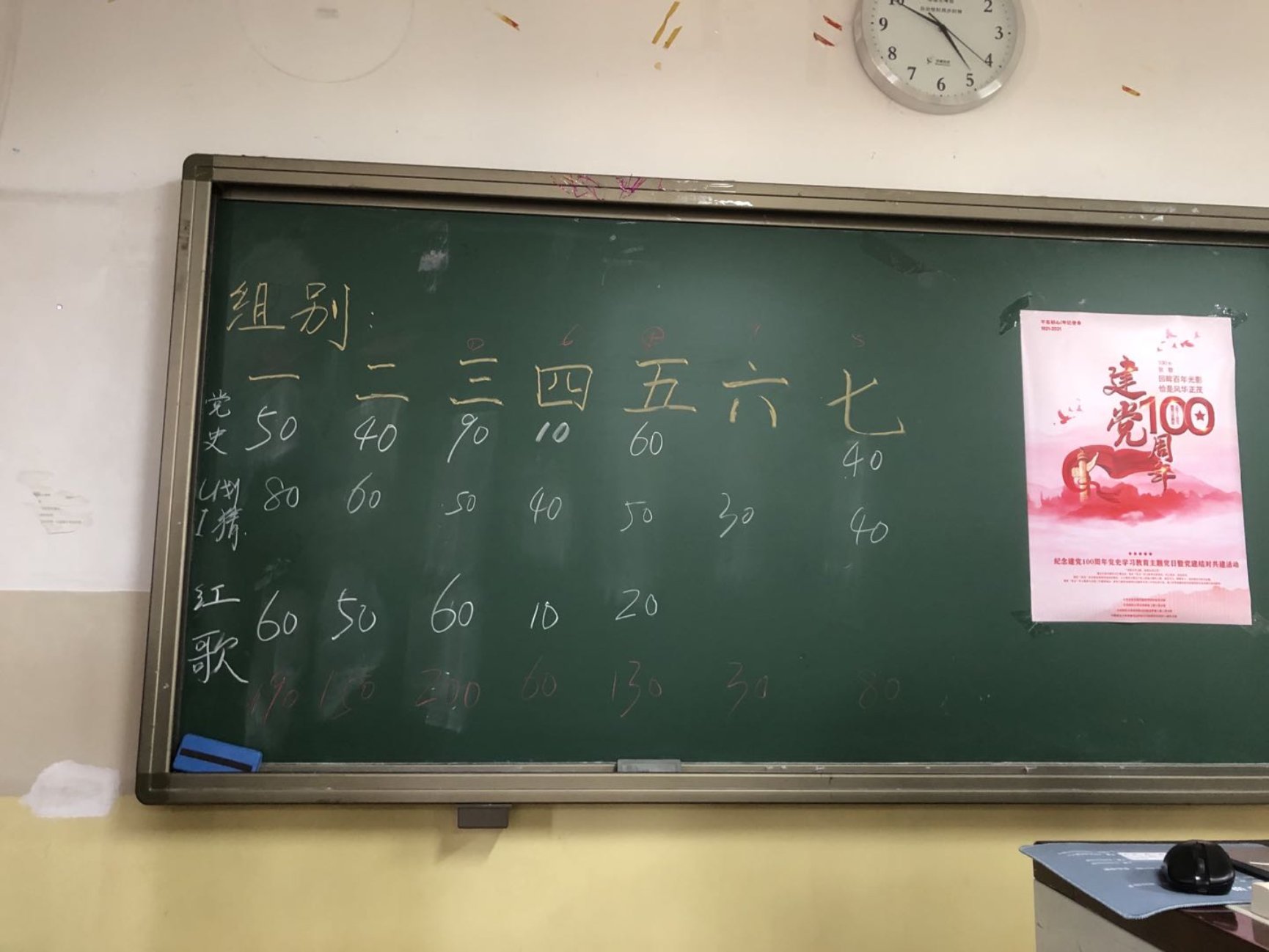 严肃而有意义的理论学习结束后,为了考察同志们对于党史的了解程度,我们组织开展了寓教于乐竞赛,此部分共有三个环节——党史知识竞答、听红歌识曲、你划我猜。为了加强支部间的沟通,两个支部成员已被提前打乱分为了七个小组,每个小组为9人。