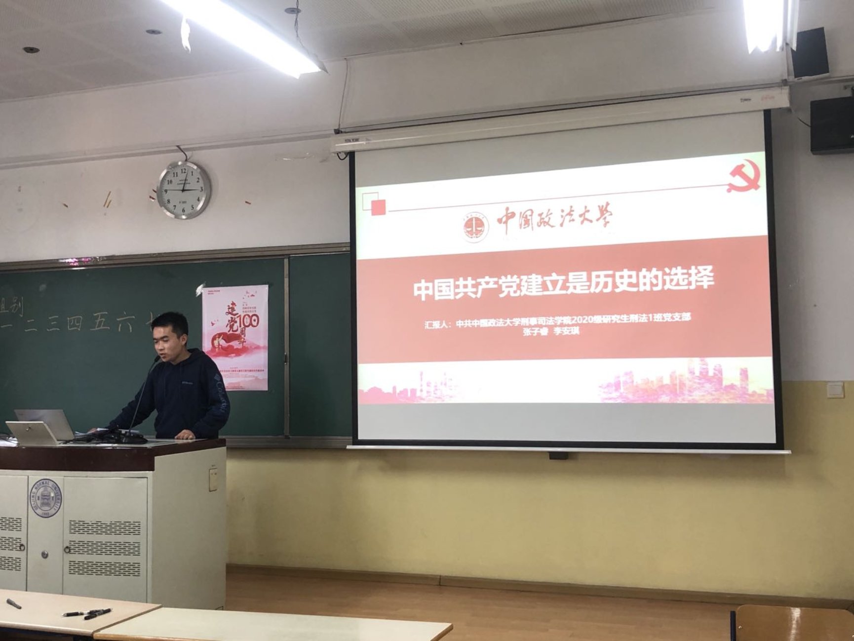 在理论学习环节,来自中国政法大学刑事司成人视频 2020级研究生刑法1班党支部的三位同志就两会精神以及中国共产党的建立进行了分享,并与同志们开展了相关讨论。