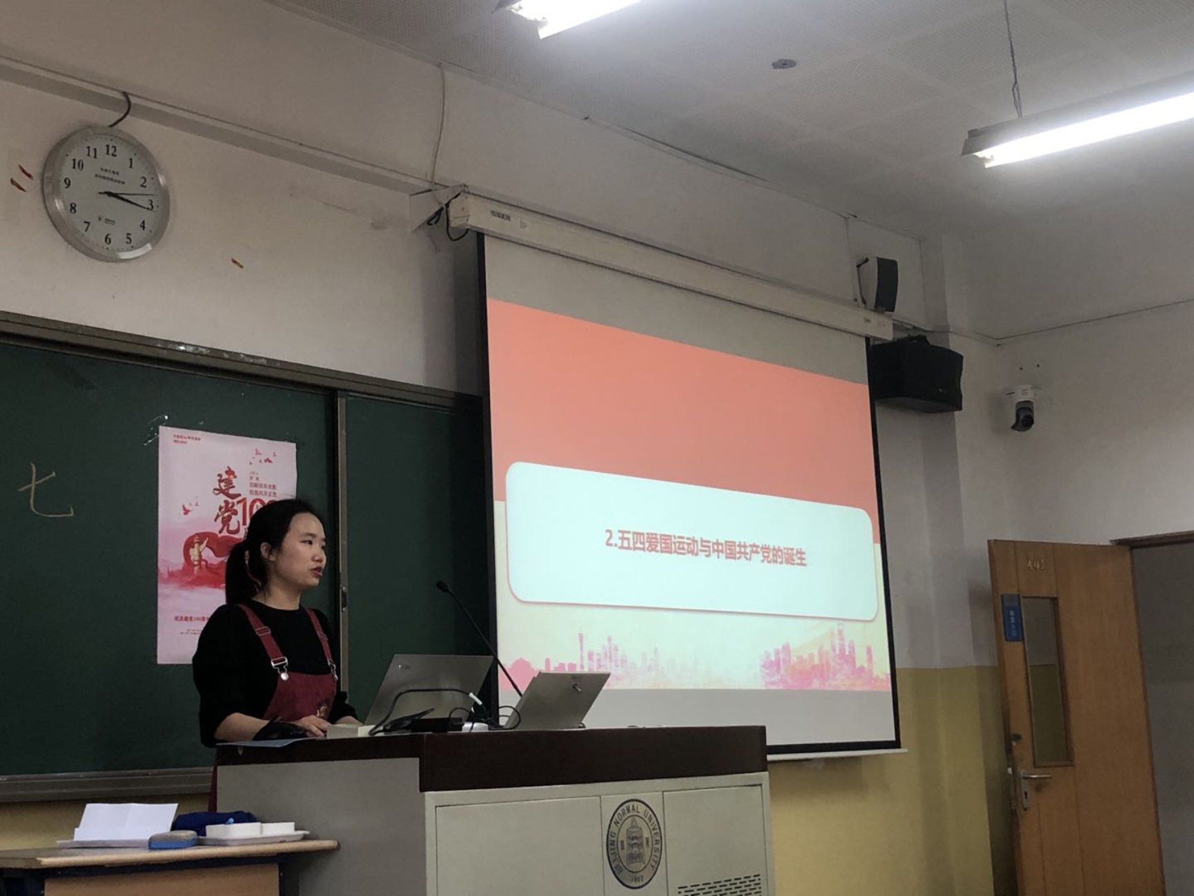 在了解了中国共产党建立的时代背景后,李安琪同志给我们分享了五四爱国运动与中国共产党的诞生。李安琪同志表示,五四爱国运动为中国共产党的成立在阶级、思想、干部、组织以及国际帮助等五个方面奠定了相应的基础。而党的一大能顺利召开也表明中国共产党正式成立,而这也表示,中国革命从此有了正确前进方向,中国人民有了强大精神力量,中国命运有了光明的发展前景。
