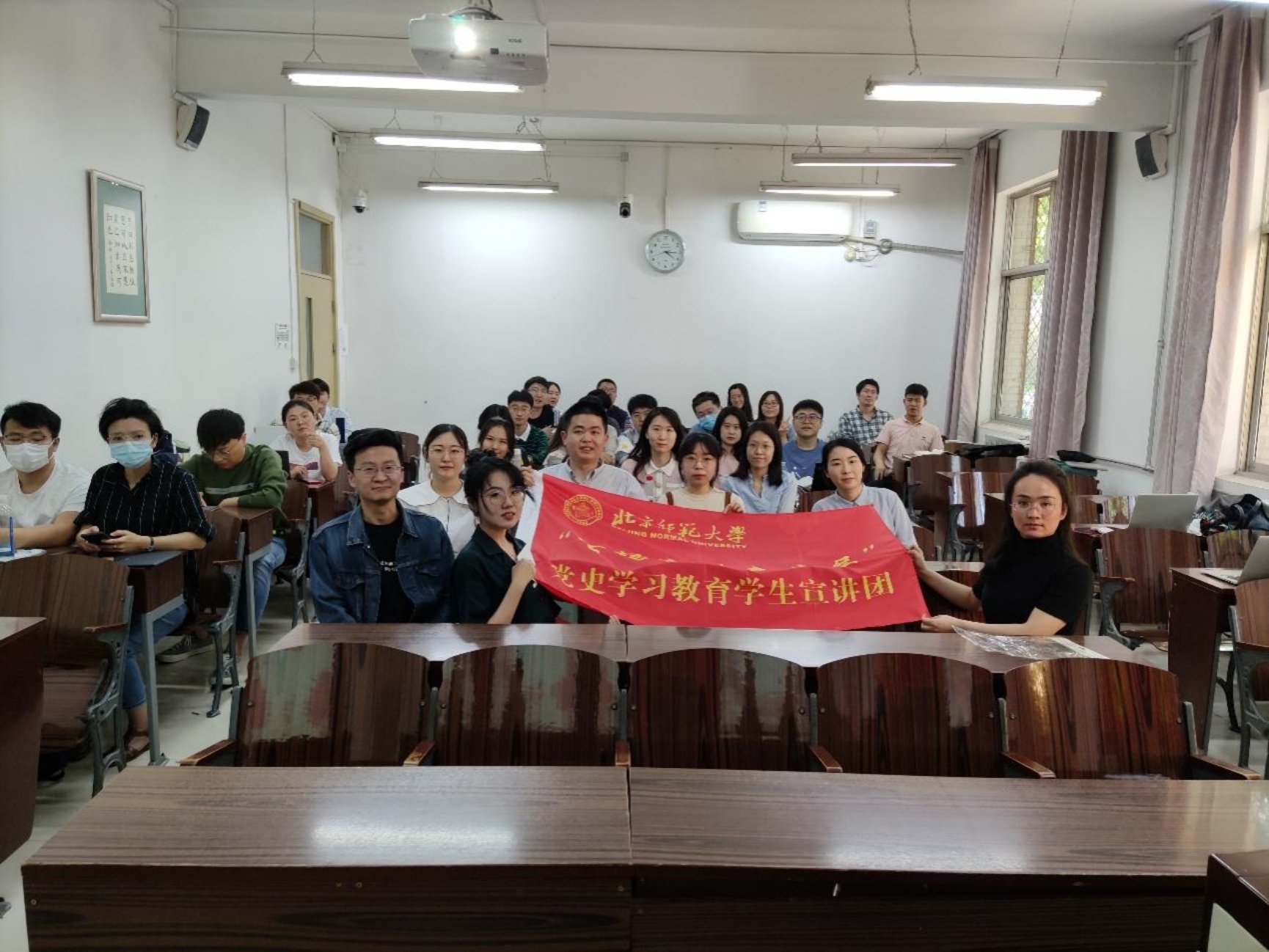 活动伊始,两支部成员共同参观了位于北京师范大学后主楼23楼的校史馆。在参观的活动中,詹周达同学介绍了北京师范大学大学的百年校史,大家纷纷表示北师大始终同中华民族争取独立、自由、民主、富强的进步事业同呼吸、共命运,北师大光荣而悠久的办学传统给所有人都留下了深刻的印象。
