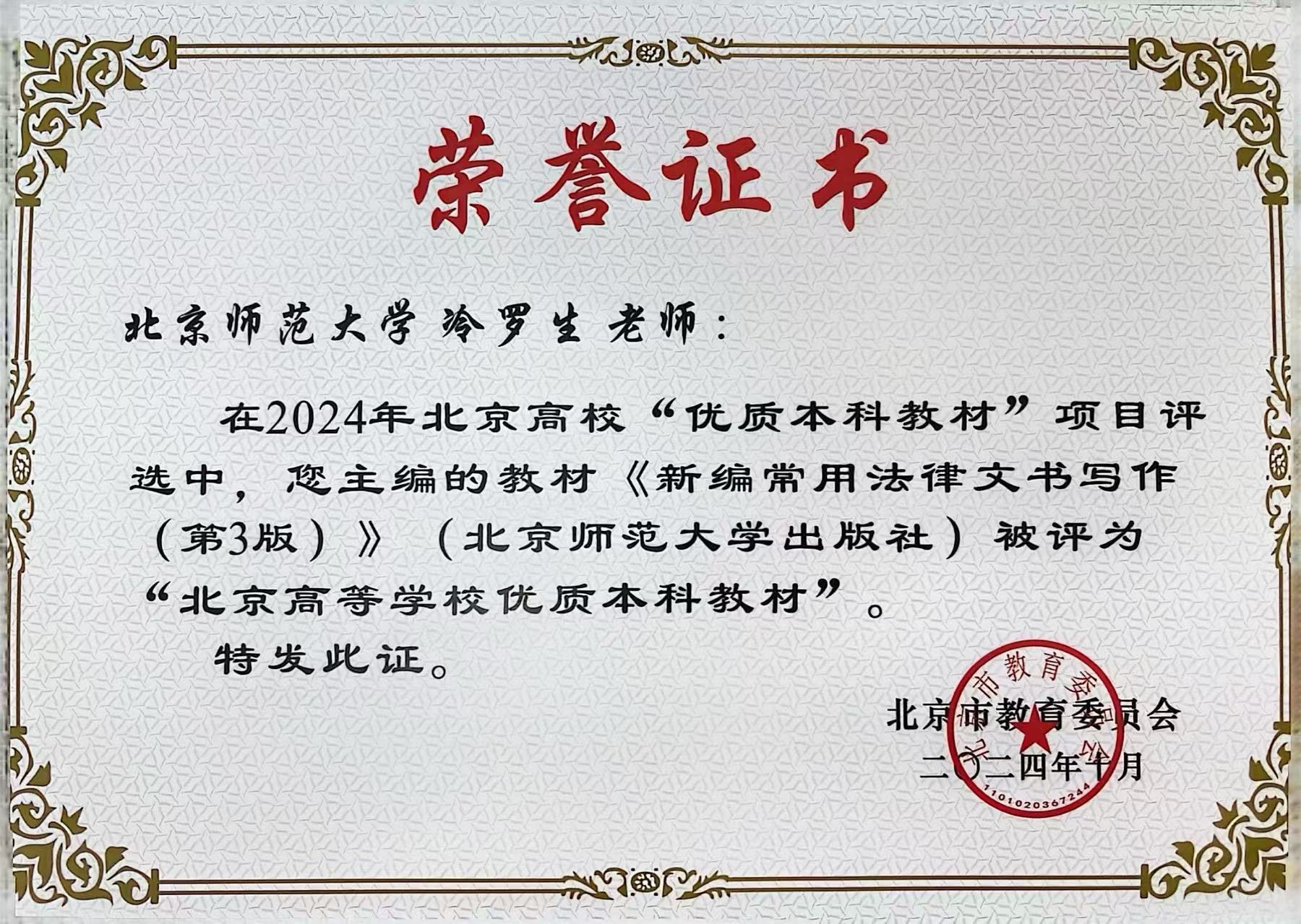 冷罗生教授主编《新编常用法律文书写作(第3版)》,北京师范大学出版社2023年版。