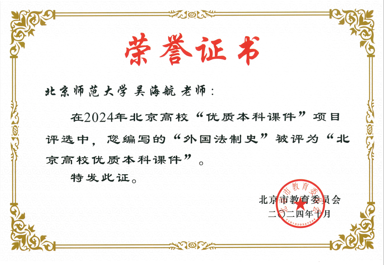 近日,北京市教育委员会发布了《关于公布2024年优质本科教材遴选结果的通知》(京教函〔2024〕536号)和《关于公布2024年优质本科教案课件评选结果的通知》(京教函〔2024〕537号)。我院1部教材获评“2024年北京高校优质本科教材”、1门课程课件获评“2024年北京高校优质本科课件”。