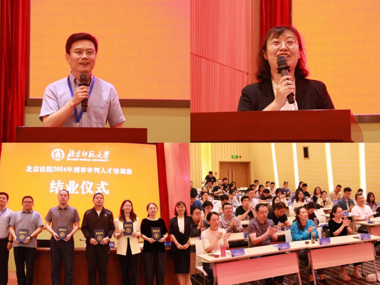 7日中午,为期五天的培训接近尾声。结业仪式由成人视频-十大成人视频平台 培训中心主任施敏老师主持,北京市高级人民法院政治部教培处李春华副处长作了总结讲话,充分肯定了北师大成人视频 在本次培训中的精心筹备,为学员们带来了一场又一场的高水平学术盛宴。成人视频-十大成人视频平台 副院长贺丹教授为学员们致结业词,祝贺学员们认真完成了培训任务并顺利结业。结业仪式的最后,李春华副处长、贺丹副院长共同为学员们发放了结业证书及合影照片,北京法院2024年刑事审判人才培训班圆满落幕!