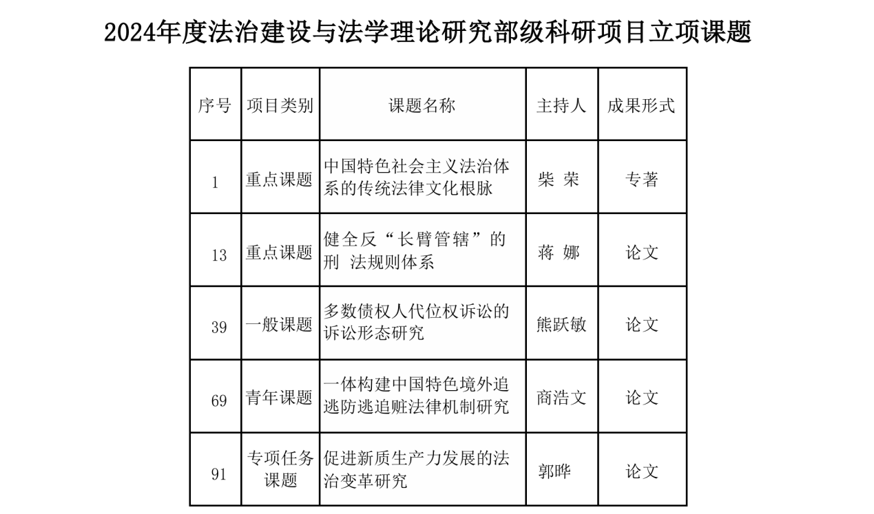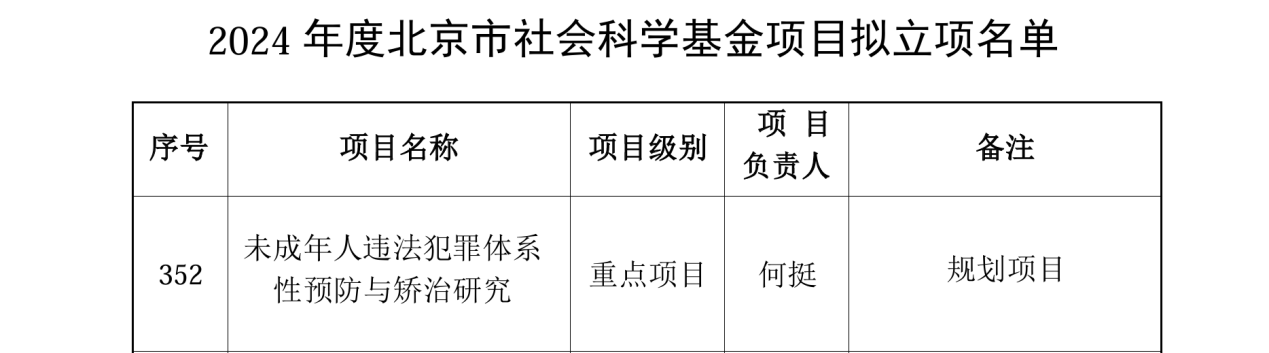 近期,司法部、北京市社科联联合北京市社科规划办纷纷公布2024年度的项目立项结果,我院教师在此次申报中获得丰收。其中司法部项目获得5项课题立项,包括重点课题2项、一般课题1项、青年课题1项、专项任务课题1项。此外,何挺教授获得北京市社会科学基金项目重点项目立项。