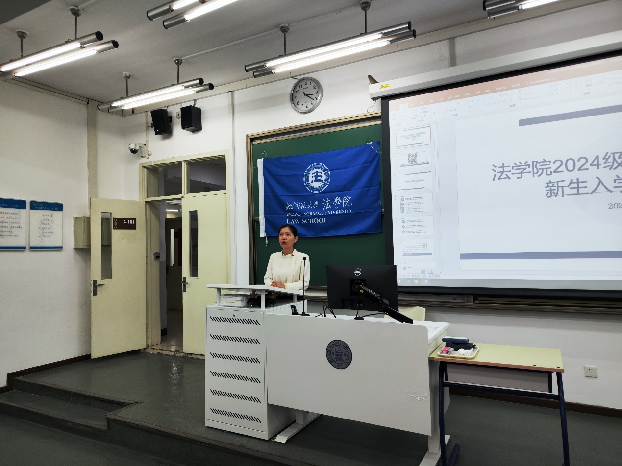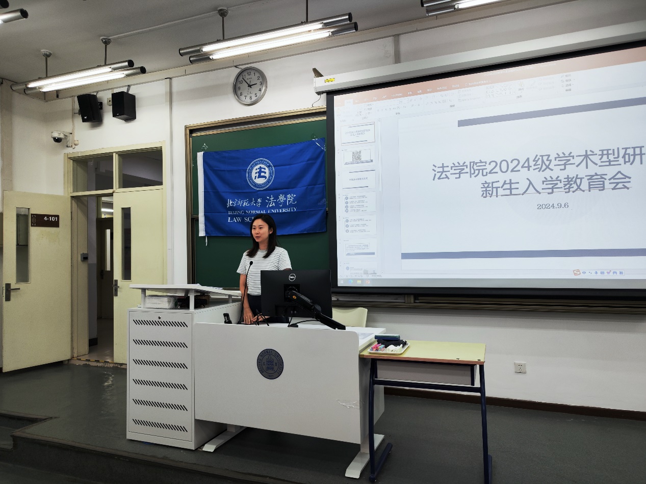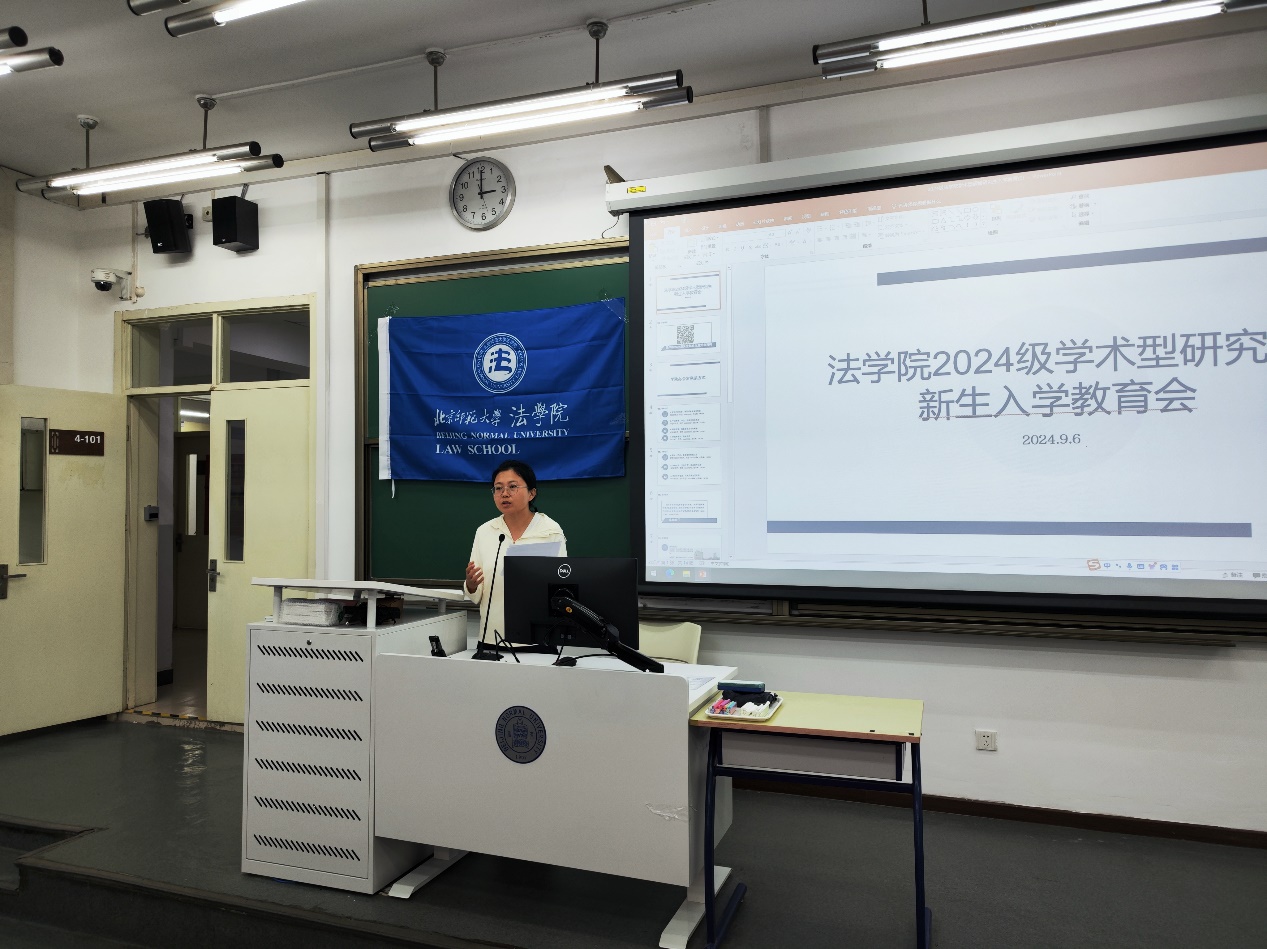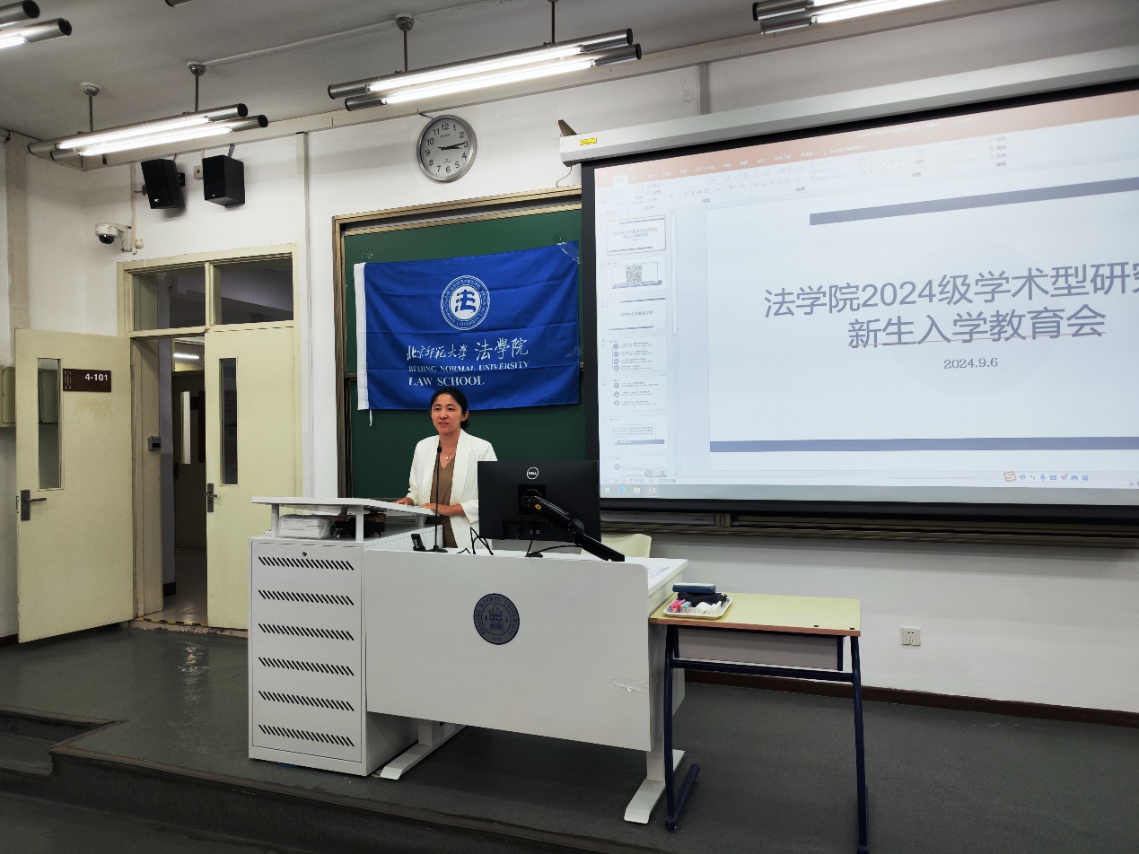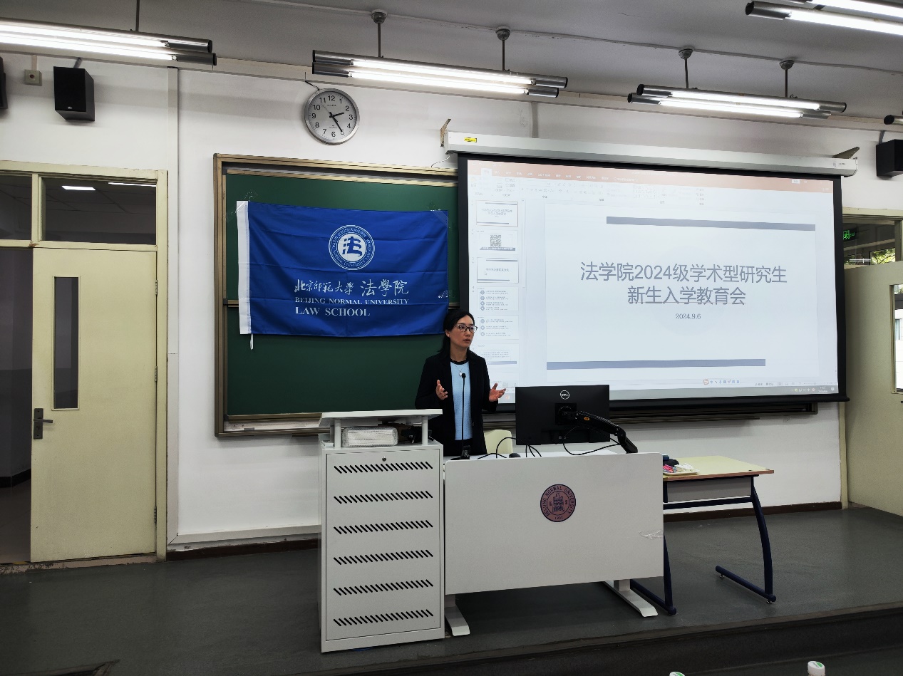 下午2点会议准时开始。贺丹代表成人视频 向全体2024级硕博新生表示热烈欢迎,并为同学们介绍了北师大法学学科的发展历程以及近年来成人视频 在学科建设、师资团队、人才培养等方面的丰硕成果。她寄语全体新生要珍惜成人视频 的丰富学术资源。